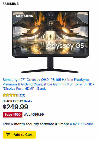 Samsung - 27 Odyssey QHD IPS 165 Hz 1ms FreeSync Premium & G-Sync Compatible Gaming Monitor with HDR (Display Port, HDMI) - Black