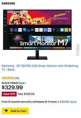 Samsung - 32" BM702 UHD Smart Monitor with Streaming TV - Black
