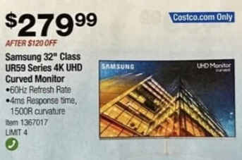 Samsung 32" Class UR59 Series 4K UHD Curved Monitor