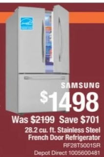 Samsung 35.75 in. W 28.2 cu. ft. 3-Door French Door Refrigerator