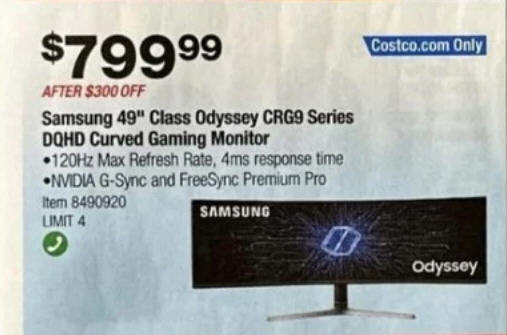 Samsung 49" Class Odyssey CRG9 Series DQHD Curved Gaming Monitor