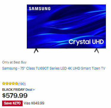 Samsung 75" Class TU690T Series LED 4K UHD Smart Tizen TV