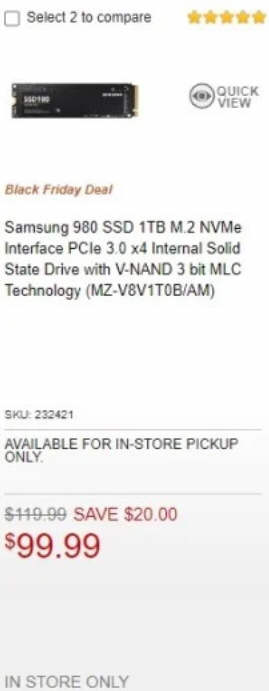 Samsung 980 SSD 1TB M.2 NVMe Interface PCIe 3.0 x4 Internal Solid State Drive