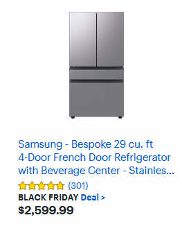 Samsung - Bespoke 29 cu. ft 4-Door French Door Refrigerator with Beverage Center - Stainless steel