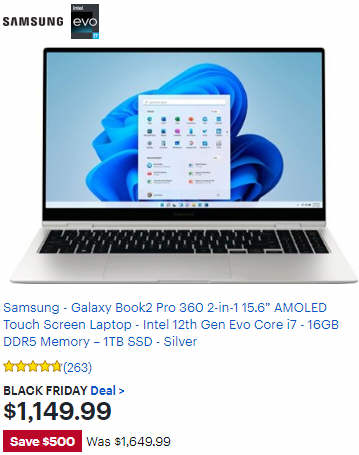 Samsung Galaxy Book2 Pro 360 2-in-1 Intel 12th Gen Evo Core i7 15.6 AMOLED Touch Screen Laptop