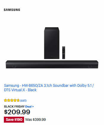 Samsung - HW-B650/ZA 3.1ch Soundbar with Dolby 5.1 / DTS Virtual:X - Black