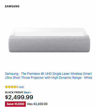 Samsung - The Premiere 4K UHD Single Laser Wireless Smart Ultra Short Throw Projector with High Dynamic Range - White