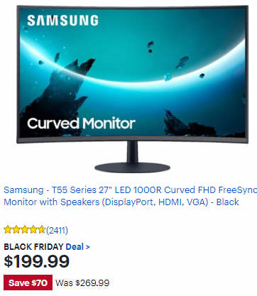 Samsung T55 Series 27" LED 1000R Curved FHD FreeSync Monitor with Speakers