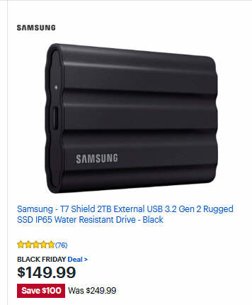Samsung - T7 Shield 2TB External USB 3.2 Gen 2 Rugged SSD IP65 Water Resistant Drive - Black