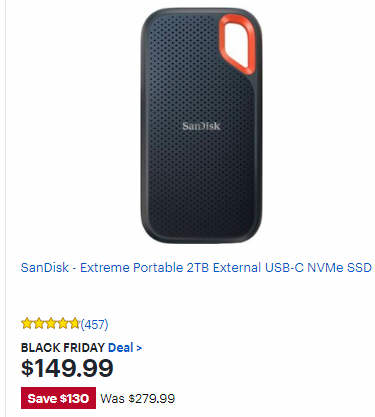 SanDisk Extreme Portable 2TB External USB-C NVMe SSD
