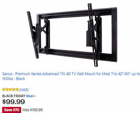 Sanus - Premium Series Advanced Tilt 4D TV Wall Mount for Most TVs 42"-90" up to 150lbs - Black