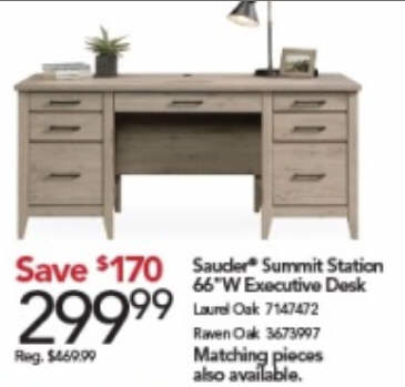Sauder Summit Station 66"W Executive Desk, Raven Oak
