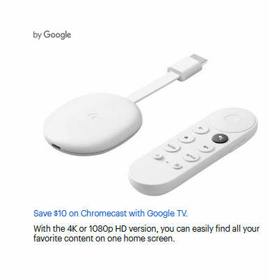 Save $10 on Chromecast with Google TV.