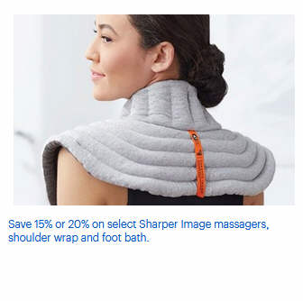 Save 15% or 20% on select Sharper Image massagers, shoulder wrap and foot bath.