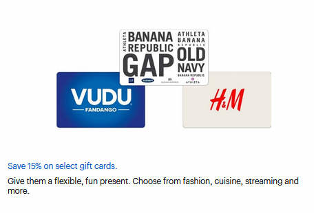 Save 15% on select gift cards.