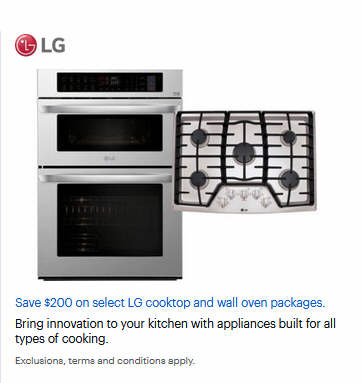 Save $200 on select LG cooktop and wall oven packages.
