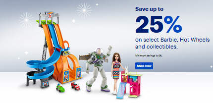 Save 25% on select Barbie, Hot Wheels and collectibles
