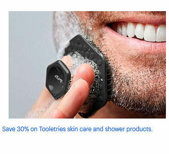Save 30% on Tooletries skin care and shower products.