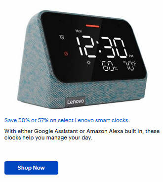Save 50% or 57% on select Lenovo smart clocks.