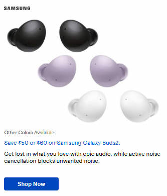 Save $50 or $60 on Samsung Galaxy Buds2.