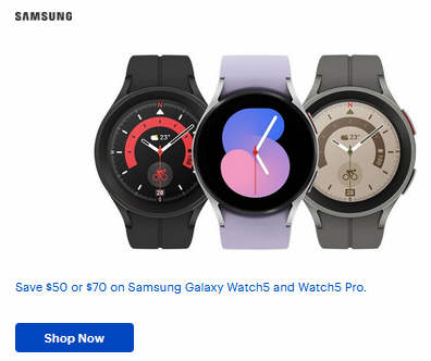 Save $50 or $70 on Samsung Galaxy Watch5 and Watch5 Pro.