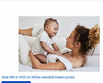 Save $66 or $100 on Willow wearable breast pumps.