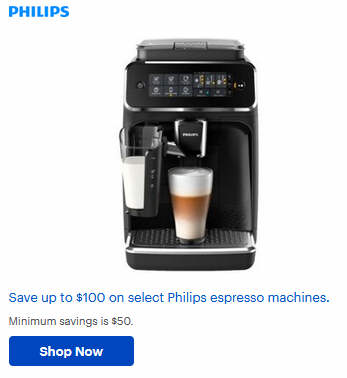 Save up to $100 on select Philips espresso machines.