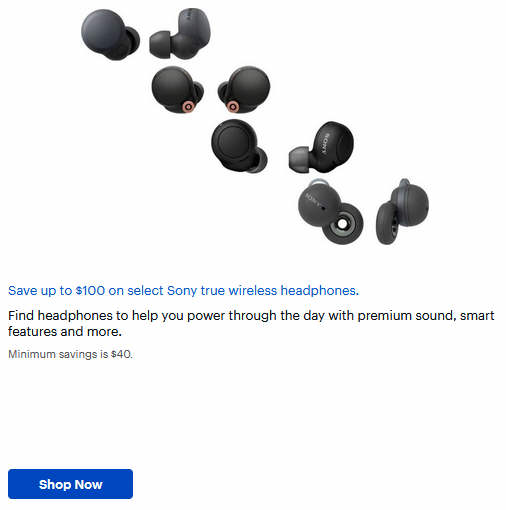 Save up to $100 on select Sony true wireless headphones.