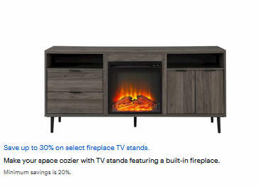 Save up to 30% on select fireplace TV stands.