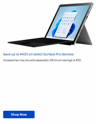 Save up to $430 on select Surface Pro devices.