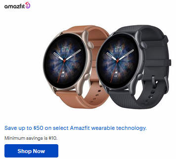 Save up to $50 on select Amazfit wearable technology.