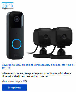 Save up to 50% on select Blink security devices, starting at $29.99.