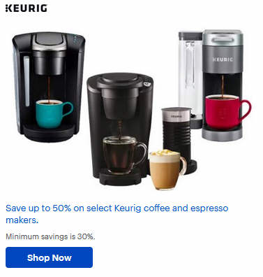 Save up to 50% on select Keurig coffee and espresso makers.