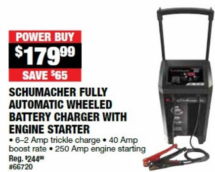Schumacher Wheeled Battery Charger/Trickle Charger/Desulfator/Engine Starter 6/12 Volt, 6-2/40/250 Amp, Model# SC1325