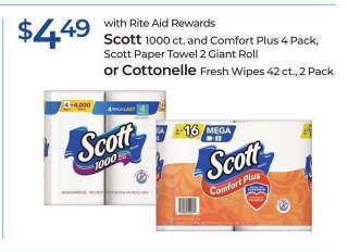 Scott 1000 ct. and Comfort Plus 4 Pack, Scott Paper Towel 2 Giant Roll or Cottonelle Fresh Wipes 42 ct., 2 Pack