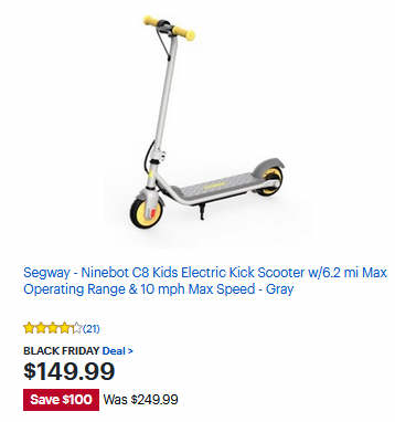 Segway - Ninebot C8 Kids Electric Kick Scooter w/6.2 mi Max Operating Range & 10 mph Max Speed - Gray
