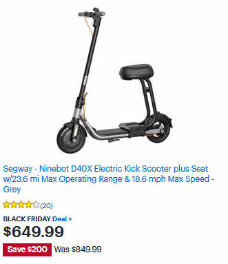 Segway - Ninebot D40X Electric Kick Scooter plus Seat w/23.6 mi Max Operating Range & 18.6 mph Max Speed - Grey