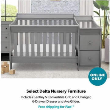 Select Delta Nursery Furniture Includes Bentley S Convertible Crib and Changer, 6-Drawer Dresser and Ava Glider.