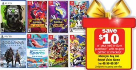 Select Video Game. save $10 on your next in-store purchase with coupon printed at checout when you buy one