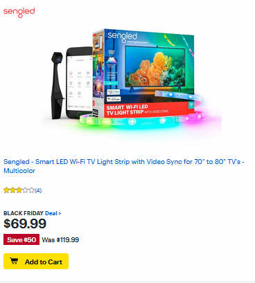 Sengled - Smart LED Wi-Fi TV Light Strip with Video Sync for 70" to 80" TV's - Multicolor