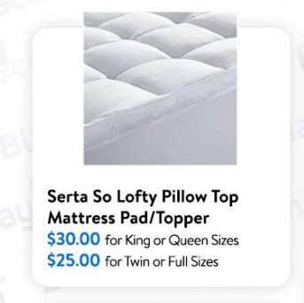 Serta So Lofty Pillow Top Mattress Pad/Topper