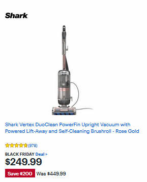 Shark Vertex DuoClean PowerFin Upright Vacuum with Powered Lift-Away and Self-Cleaning Brushroll - Rose Gold