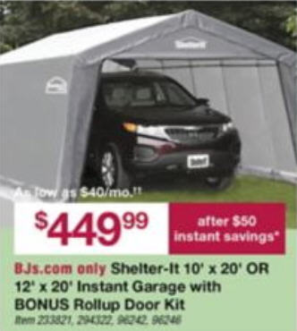 Shelter-It 12' x 20' Instant Garage with BONUS Rollup Door Kit