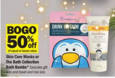 Skin Care Masks or The Bath Collection Bath Bombs: BOGO of equal or lesser value 50% off