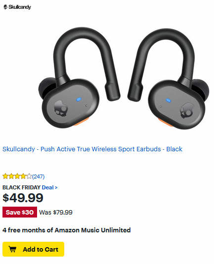 Skullcandy - Push Active True Wireless Sport Earbuds - Black