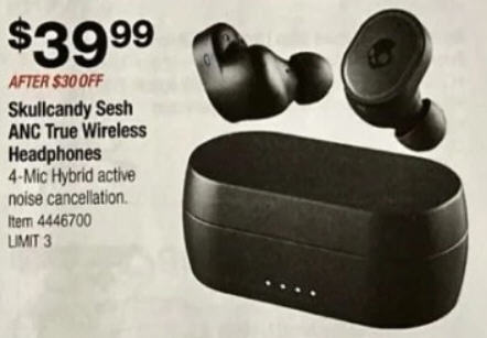 Skullcandy Sesh ANC True Wireless Headphones 4-Mic Hybrid active noise cancellation.
