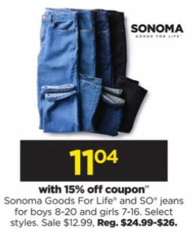 Sonoma Goods For Life and SO jeans for boys 8-20 and girls 7-16