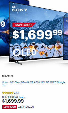 Sony 65" Class BRAVIA XR A80K 4K HDR OLED Google TV