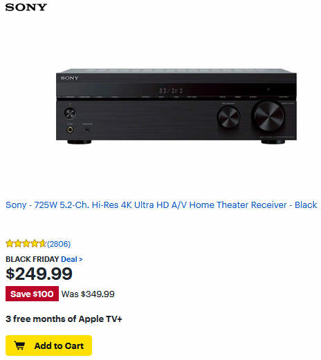 Sony - 725W 5.2-Ch. Hi-Res 4K Ultra HD A/V Home Theater Receiver - Black