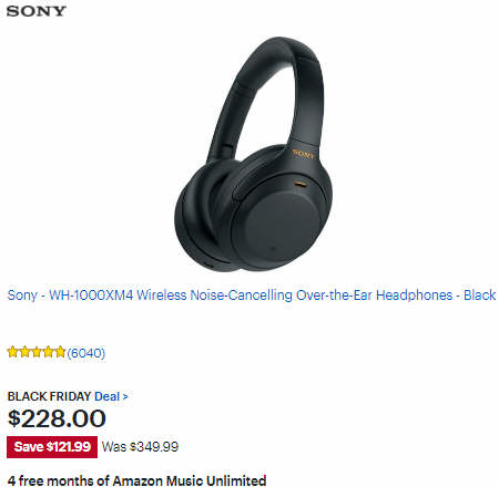 Sony WH-1000XM4 Wireless Noise-Cancelling Over-the-Ear Headphones